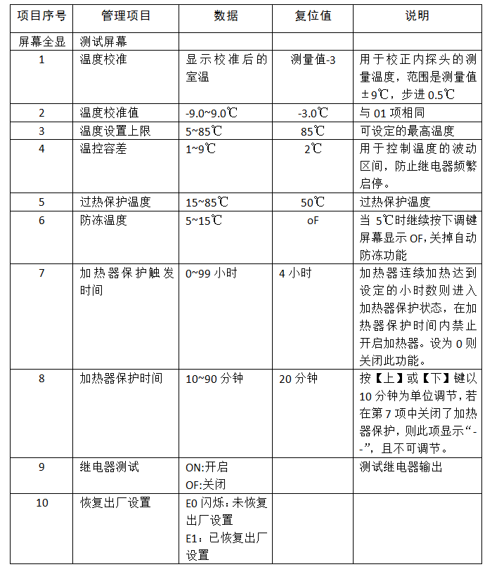 對于“雙控”機型,在開機狀態下,同時按住【上】和【下】鍵,可查看外置探頭溫度(地溫),此時設定溫度欄顯示過熱保護溫度。松開【上】和【下】鍵返回正常工作狀態。
