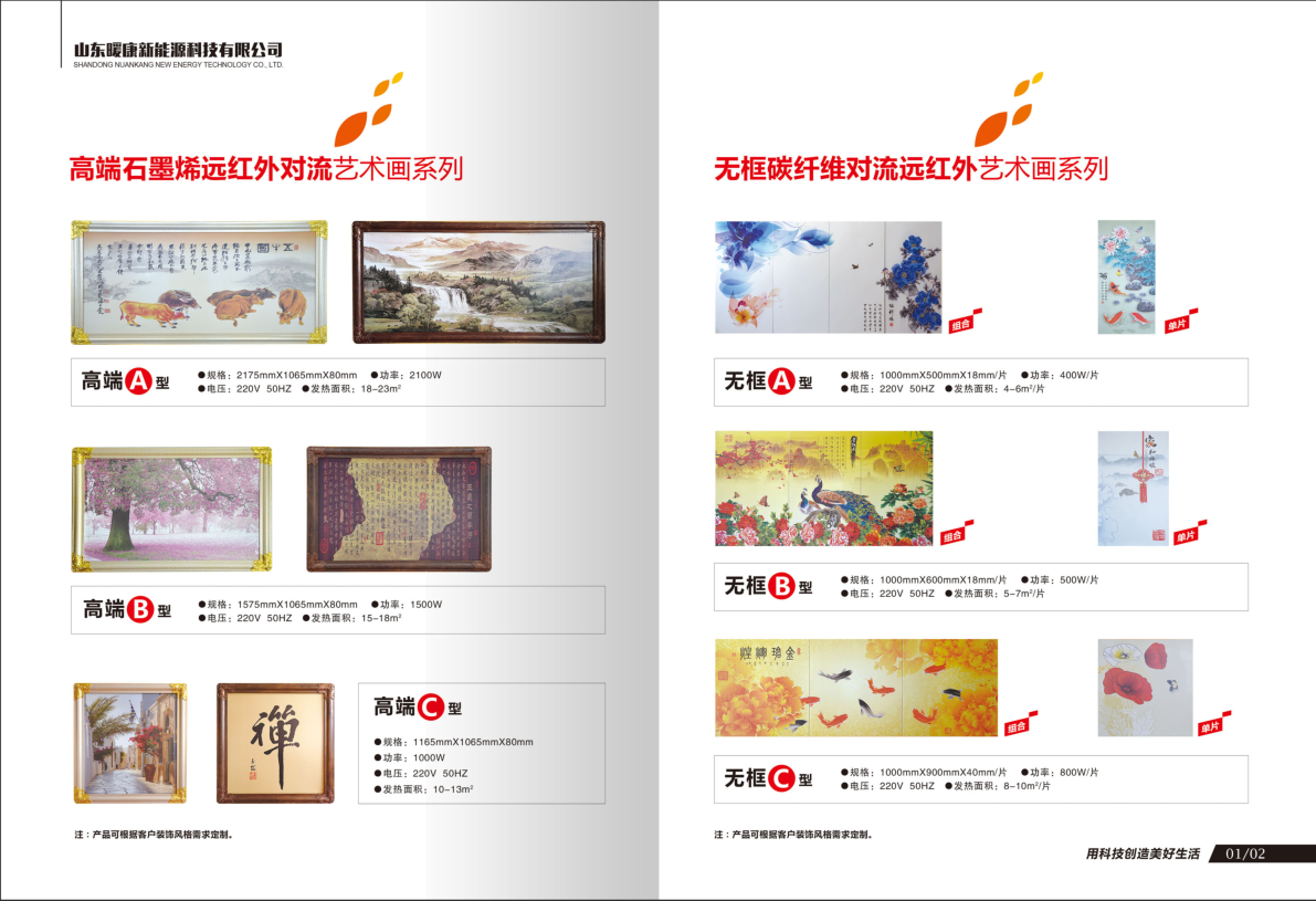 三、“暖康”碳晶低溫輻射采暖系統(tǒng)優(yōu)點:1、舒適性“暖康”碳晶低溫輻射采暖系統(tǒng)是以紅外線低溫輻射為主要能量傳遞方式的產(chǎn)品。試驗證明人體處在低溫輻射環(huán)境中,就如同置于陽光下,人體的實感溫度要高于室內(nèi)空氣溫度2—3℃,從而提高了生活環(huán)境舒適度。同時在低溫輻射條件下,室內(nèi)空氣的對流速度大幅度降低,使室內(nèi)減少灰塵,無噪音,室內(nèi)無冷點和熱點,溫度均衡,使人無燥熱感,溫度柔和如陽光般感覺。碳晶墻暖產(chǎn)生的遠紅外線波長在8—14微米區(qū)域內(nèi),人長期處在這樣的環(huán)境中可以改善人體微循環(huán),促進新陳代謝,增強細胞活力,同時有調(diào)節(jié)神經(jīng)系統(tǒng)和呼吸系統(tǒng),舒筋活血,提高人體免疫力等功能。2、經(jīng)濟型“暖康”碳晶低溫輻射采暖系統(tǒng)供暖效果好,升溫快。由于實現(xiàn)了分戶、分室供暖,可根據(jù)氣溫和需要隨意調(diào)節(jié)各室溫度,亦可節(jié)約運行費用。系統(tǒng)效率高,當室溫設定為16℃時,能達到18℃的取暖效果,室溫每降低一度可節(jié)約5%的能源。由于室內(nèi)周圍物體溫度高于空氣溫度,在短期關閉供暖系統(tǒng)時,室內(nèi)周圍物體散發(fā)的熱量會起到保持室溫穩(wěn)定的作用。試驗表明低溫輻射電熱系統(tǒng)停電6小時,室溫僅下降2℃。3、安全性:碳晶墻暖的生產(chǎn)符合GB/T4654-2008標準,并通過國家紅外及工業(yè)電熱產(chǎn)品質量監(jiān)督檢驗中心質檢。產(chǎn)品絕緣強度高、阻燃、防水、防潮、耐腐蝕、免維修、使用壽命長(通過十萬小時老化試驗)。4、簡便性“暖康”碳晶墻暖以模塊化理念進行產(chǎn)品設計、生產(chǎn),結構合理,安裝便捷。組合靈活,可以任意方式安裝組合,無小安裝面積要求。本系統(tǒng)不占用室內(nèi)使用空間,不需要維修,節(jié)約了其他供暖方式所需的維修和運營費用。